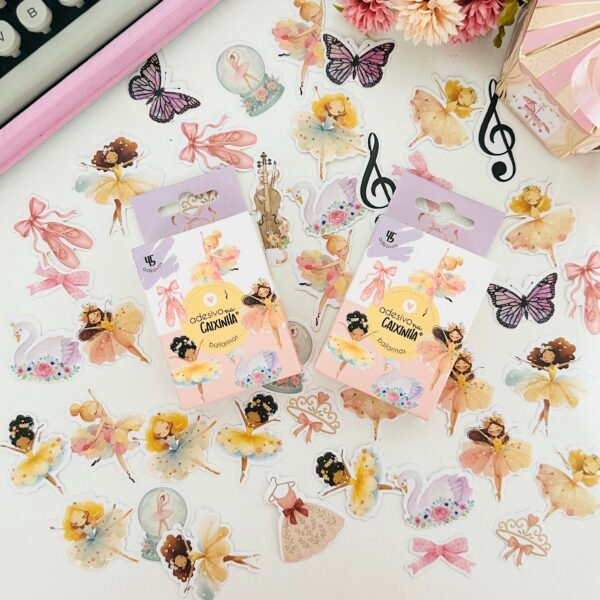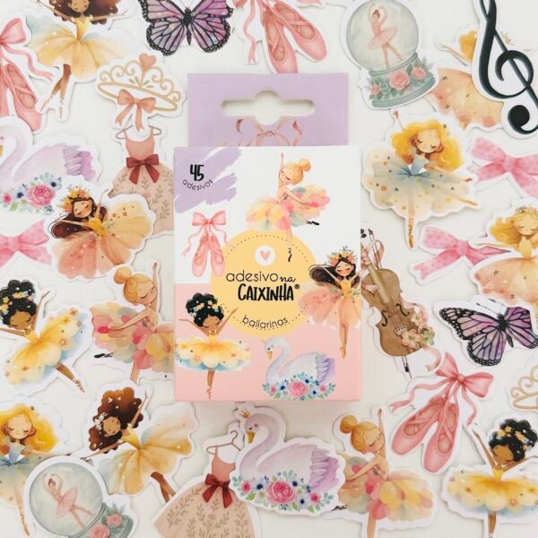Todo mundo ama adesivos, não é? Eles enfeitam cadernos, agendas, computadores, celulares…Eles colorem tudo por onde passam e deixam o dia mais divertido! Nessa caixinha você encontrará uma variedade de adesivos para enfeitar seus cadernos e acessórios.