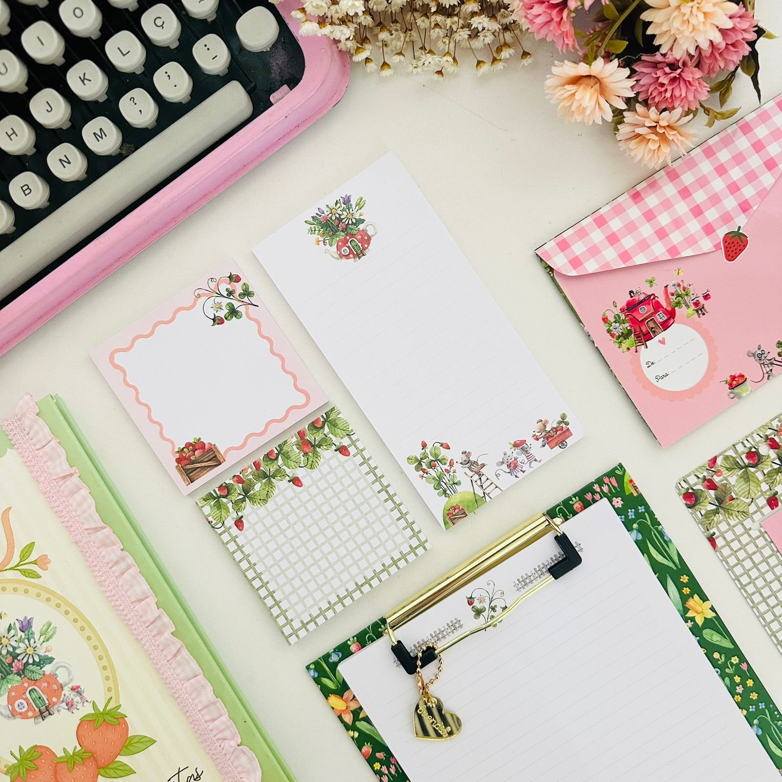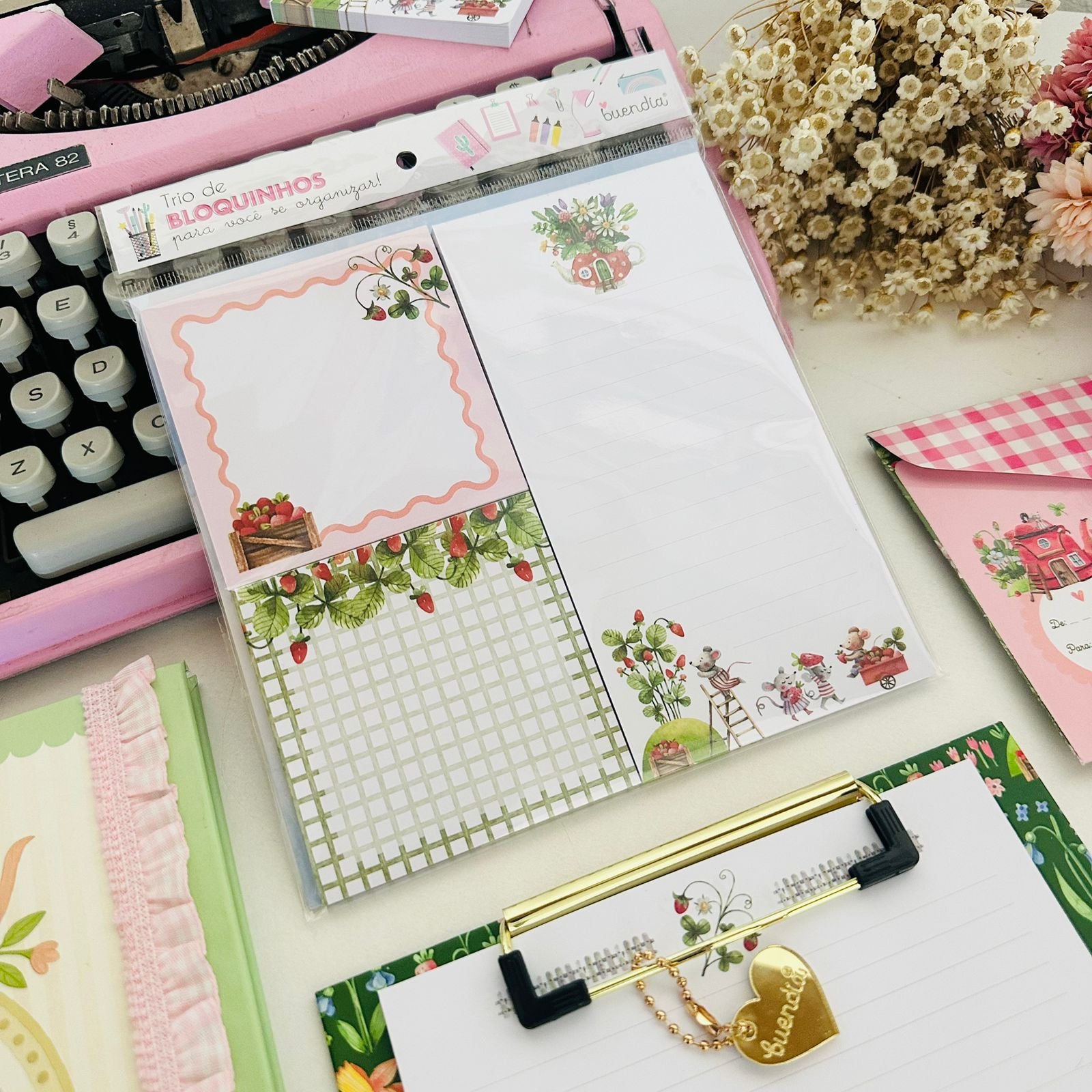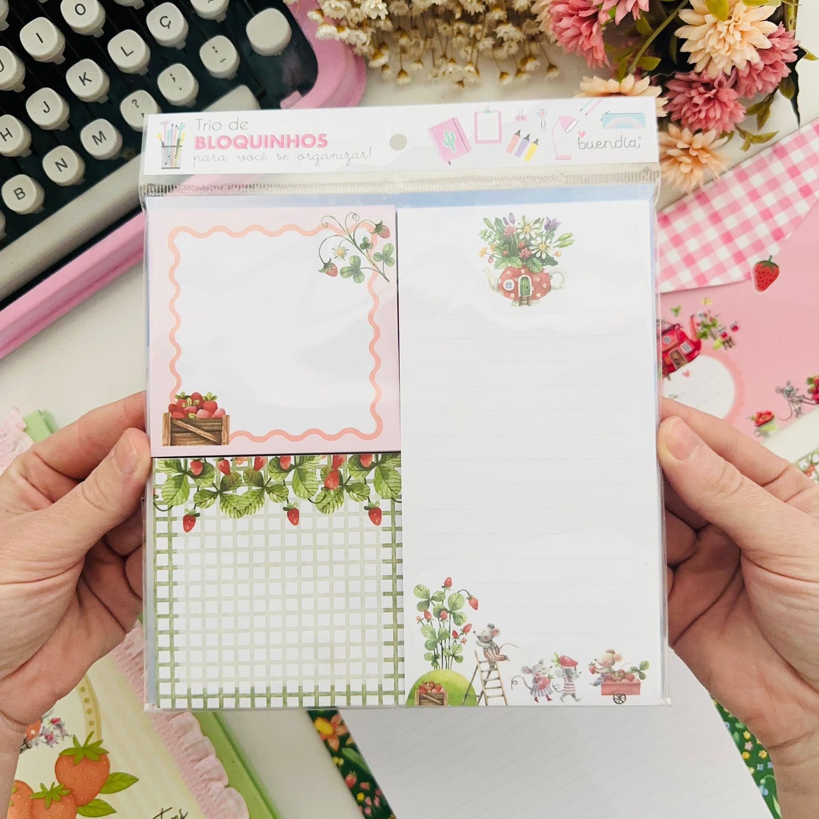 trio de bloquinhos com 40 folhas fazenda de morangosTrio de Bloquinhos com 40 Folhas – Fazenda de Morangos